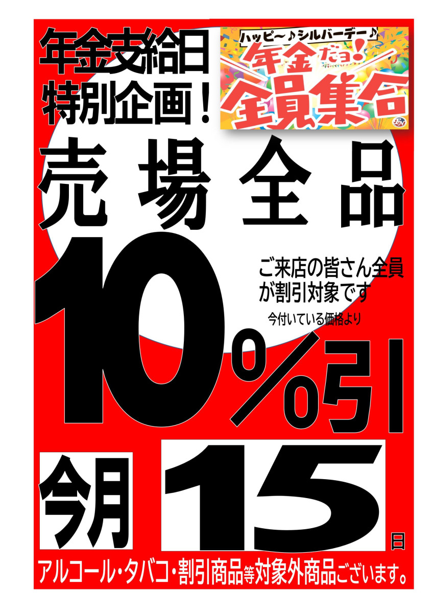 8月15日金曜日はハッピーシルバーデーとして全商品10%引き(一部商品を除く)を実施いたします!!!