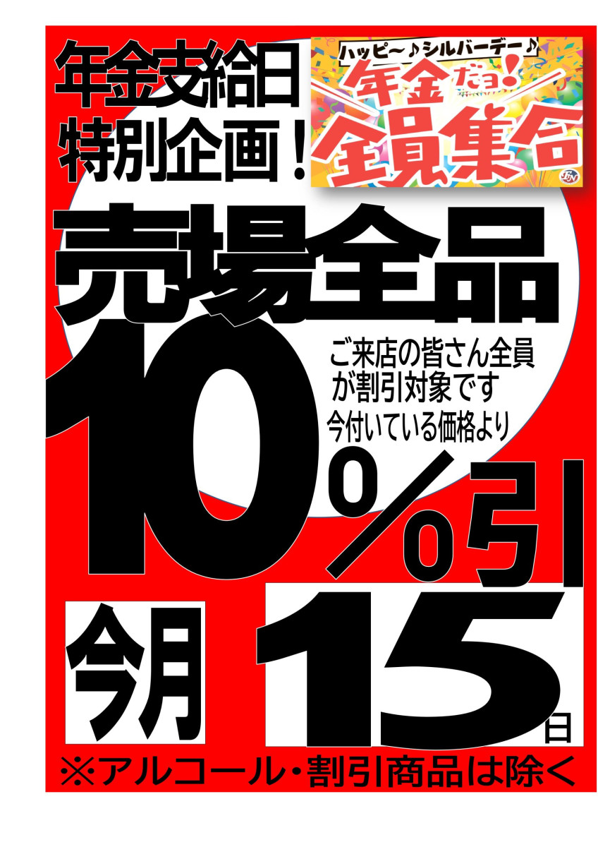 10月15日(水)はハッピーシルバーデーとして全商品10%引き(一部商品を除く)を実施いたします!!!